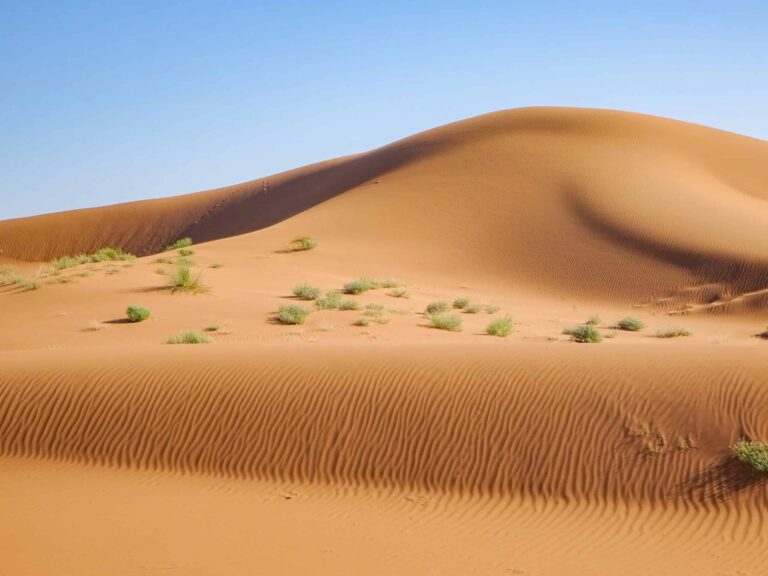 Zwischen Sanddünen und Oasen erlebt Gerhard die Wüste genauso, wie er sie sich erträumt hat. „Man steht auf einer Düne und sieht nichts als Sand, Licht und Schatten. Das war absolut einmalig“, schwärmt Gerhard. Dank Regenfällen wenige Monate zuvor erstrahlt die Wüste sogar überraschend grün. Gegen Abend richten sich die Blicke der Gruppe allerdings nach oben: „Der leuchtende Sternenhimmel war gigantisch, so etwas sieht man bei uns nicht.“ Wohltuend war auch die digitale Auszeit: „Die Tage ohne Nachrichten, ohne Handy waren angenehm entschleunigend. Nur diese unglaubliche Stille um uns herum. Das hat mich sehr bewegt.“