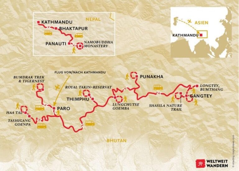Das Spektrum der Reisen bei Weltweitwandern reicht von sehr gemütlichen Spaziergang-Wanderreisen bis zu ganz schön herausfordernden Trekkingtouren, eingeteilt und gut gekennzeichnet mit einer Skala von 1 bis 5. Wenn Sie sich hier Ihrer eigenen Kondition unsicher sind, probieren Sie bitte unbedingt vor Ihrer Reisebuchung zum Beispiel bei Tourencharakter 3 gut aus, was es für Sie heißt, einen mit 6 Stunden angegebenen Wanderweg im Gebirge mit inkludierten Anstiegen von bis 1.000 Meter zu begehen! Planen Sie auch persönliche Leistungsreserven ein für z.B. außergewöhnlich heißes, kaltes oder feuchtes Wetter oder weniger fitte Tage. Unsere Touren beinhalten eine Mischung aus Kultur, Natur und Abenteuer. Zwischendurch kann es auch lange und anstrengende Reisetage geben.