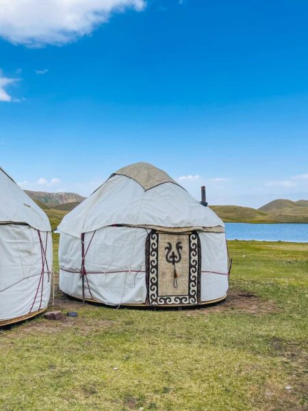 Sie erinnern an willkürlich in die Landschaft gestreute Zwergenhütten auf grünen Riesenwiesen – die schneeweißen Jurten, die immer wieder in den weiten Grassteppen Kirgistans auftauchen. Die traditionellen Rundzelte dien(t)en den Nomadenvölkern Zentralasiens als mobile Behausung, heute kommt bei manchen die Zusatzfunktion als Touristenunterkunft dazu.