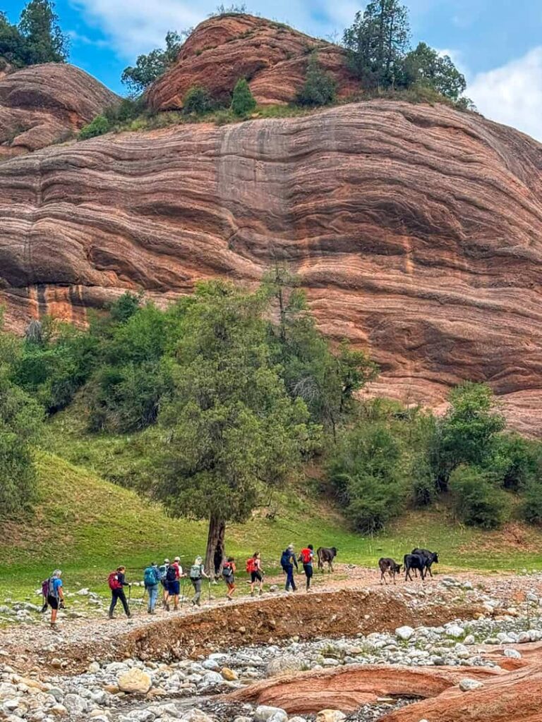 Nachhaltigkeit ist ein zentraler Aspekt unserer Wanderungen in Kirgistan. Wir arbeiten eng mit unserem lokalen Team zusammen, um durch Tourismusprojekte lokale Familien zu unterstützen. Beim Wandern in der Natur von Kirgistan ist es daher wichtig, keinen Müll zu hinterlassen, und die Natur- und Tierwelt zu respektieren und schützen. Um unsere Menge an Plastikmüll zu reduzieren, sollten wir darauf achten, unser Wasser anstatt aus Einwegplastikflaschen aus wiederverwendbaren Trinkflaschen zu trinken. Auf unseren Kirgistan-Reisen kann man unterwegs das Trinkwasser aus wiederbefüllbaren Wasserspendern bekommen.