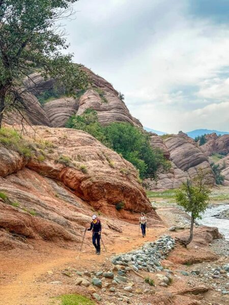 Für das Wandern in den hohen Regionen Kirgistans ist eine gute Ausrüstung empfehlenswert. Angesichts der Höhenlage und der möglichen Wetterbedingungen sollte auf robustes, wetterfestes Schuhwerk, warme Kleidung, eine geeignete Kopfbedeckung und Sonnenschutz gesetzt werden. Auch ein guter Rucksack, in dem alles Notwendige verstaut werden kann, ist unerlässlich. Auch auf eine große Trinkflasche sollte nicht vergessen werden.