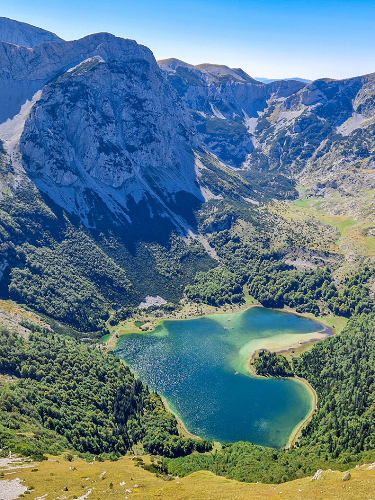 Vom Sutjeska Nationalpark brechen wir auf Richtung Maglic, dem höchsten Berg von Bosnien und Herzegovina. Die Wanderung führt durch Wälder und bergiges Gelände, bevor der Weg entlang steiler Klippen etwa vier Stunden bergauf geht. Langsam bleiben die rundum liegenden Berge unter uns zurück. Endlich am Gipfel ist es Zeit für ein Picknick, wir schauen hinunter auf Montenegro und den sehr sauberen, smaragdgrünen Trnovacko See.