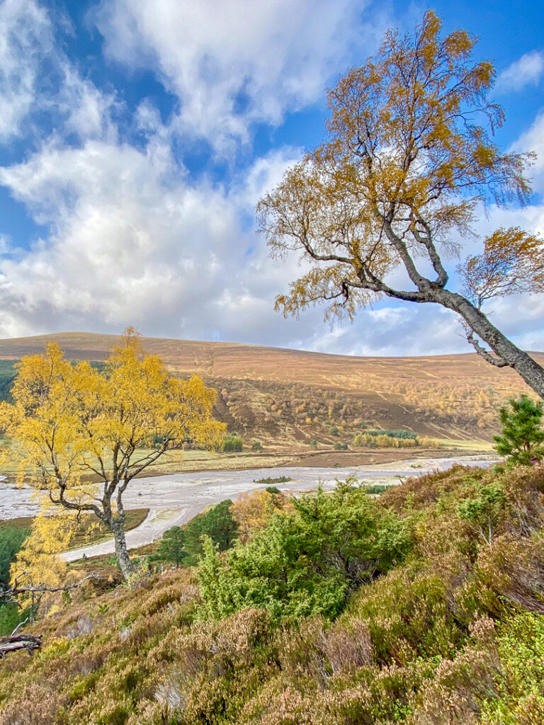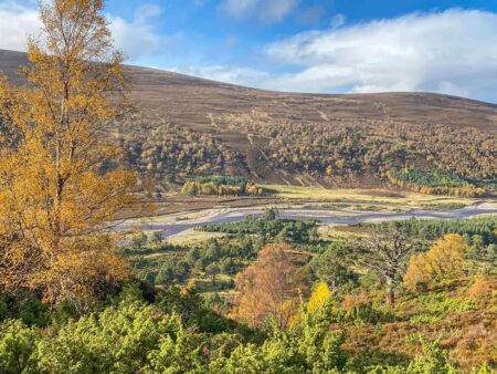 „Badenoch“, das versunkene Land, liegt vor uns. Vom Gipfel des Creag Beag genießen wir einen weiten Blick über die sanften Hügel der Highlands und den Fluss Spey, der sich durch das Tal schlängelt. Der Fluss Spey ist auf unseren Wanderungen ein treuer Begleiter – sei es beim Wandern entlang seiner Ufer oder beim Durchqueren der Insh Marshes. Dieses bedeutende Feuchtgebiet ist Lebensraum für viele Vogelarten wie Fischadler, Pfeifenten oder Kiebitze. Mit etwas Glück können wir einige von ihnen erblicken.