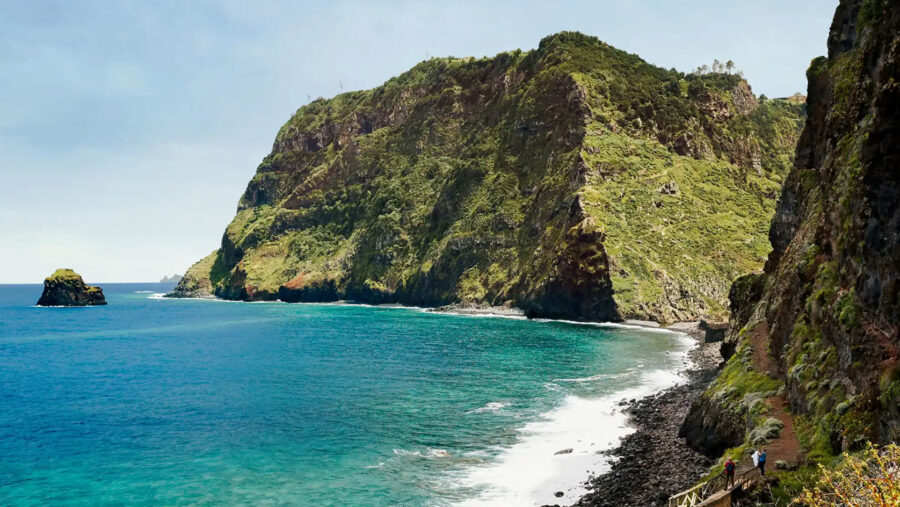 Zu Beginn wandern wir entspannt entlang einer Levada, durchqueren malerische Terrassenfelder und steigen anschließend etwa 200 Meter hinauf zum Boca do Risco Pass. Dort genießen wir einen atemberaubenden Blick über die Nordküste bis hin zum majestätischen Adlerfelsen. Der weitere Weg führt uns entlang der beeindruckenden Steilküste. An der einst gefährlichsten Stelle sorgt heute ein Geländer für Sicherheit – kaum vorstellbar, dass vor rund 80 Jahren hier noch Waren transportiert wurden.