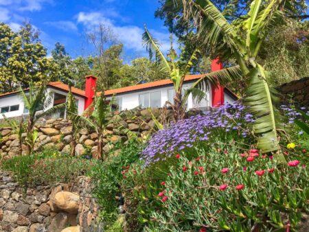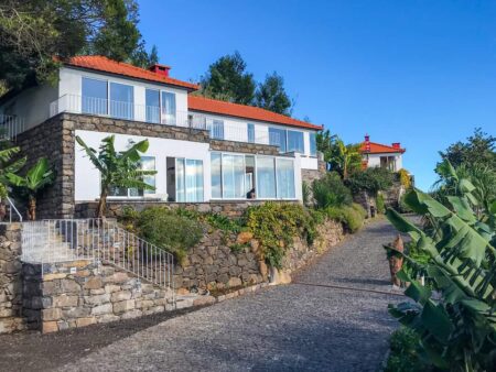 Unsere Unterkunft liegt sonnig über Santa Cruz: In der Quinta dos Artistas wohnen wir in einer landestypischen Unterkunft mit Blick über das Meer. Auf dem Grundstück befindet sich auch eine kleine Öko-Farm: Frisches Obst, Gemüse und Eier kommen direkt von dort und werden zum Frühstück serviert. Gastgeber sind das Team rund um unsere langjährigen Partner Christa, Gerald und Raimund. Als einer der wenigen Unterkünfte auf Madeira wurde der Quinta als Auszeichnung für nachhaltiges Wirtschaften der „Green Key Award“ verliehen. So wird Regenwasser für die Sanitäranlagen wieder verwendet und mit der eigenen Photovoltaik-Anlage Strom produziert.