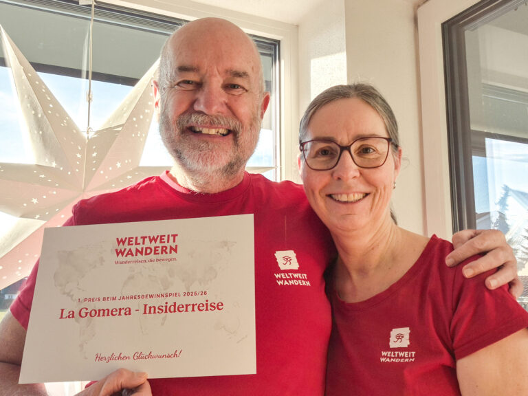 Besonders Inseln haben es unserem Hauptgewinner, für den die nächste Reise schon seine fünfte mit Weltweitwandern sein wird, angetan. Wir haben ihn gefragt, was ihn und seine Partnerin Maria dazu bewegt, immer wieder zu buchen: „An Weltweitwandern-Reisen gefällt uns besonders das Gruppenerlebnis mit gemeinsamem, lokalem Mittagessen nach einer erlebnisreichen Wanderung. Sehr schätzen wir die vielfach österreichischen Guides, die in der Region leben und wirklich jeden Winkel kennen. Es ist einfach ein gelungenes Gesamtpaket, das genau unseren Vorstellungen entspricht.“
