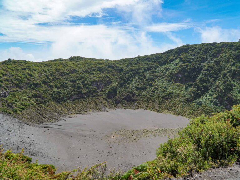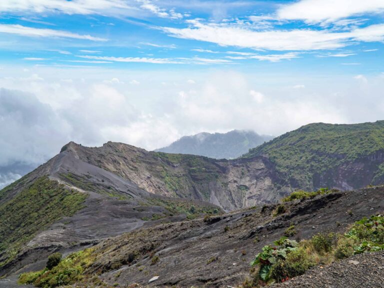 Nach einer Nacht in der Hauptstadt San José geht es für die Weltweitwandern-Gruppe bereits hoch hinaus – zum mächtigen Vulkan Irazú, mit 3.432 Metern der höchste Vulkan des Landes. Die Fahrt führt durch fruchtbare Hänge, ehe sich oben eine völlig neue Welt eröffnet: „Das hat mich fast an eine Mondoberfläche erinnert – ein gewaltiger Kontrast“, erinnert sich Julia.