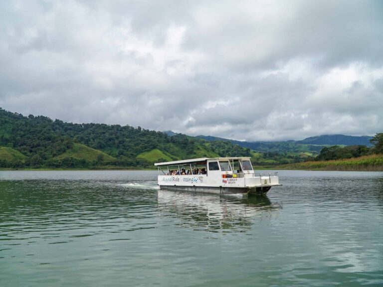 Einen eindrucksvollen Kontrast bietet der Ausflug zum Vulkan Arenal. Mit seiner markanten Kegelform sticht er schon von weitem ins Auge. Schon die Anreise ist ein kleines Abenteuer für sich: „Wir sind mit dem Boot über den Arenal-Stausee zum Fuße des Vulkans geschippert. Es war Regenzeit, deshalb zeigte er sich nur sporadisch. Aber wenn er kurz zwischen den Wolken durchblitzte, war das einfach gigantisch.“