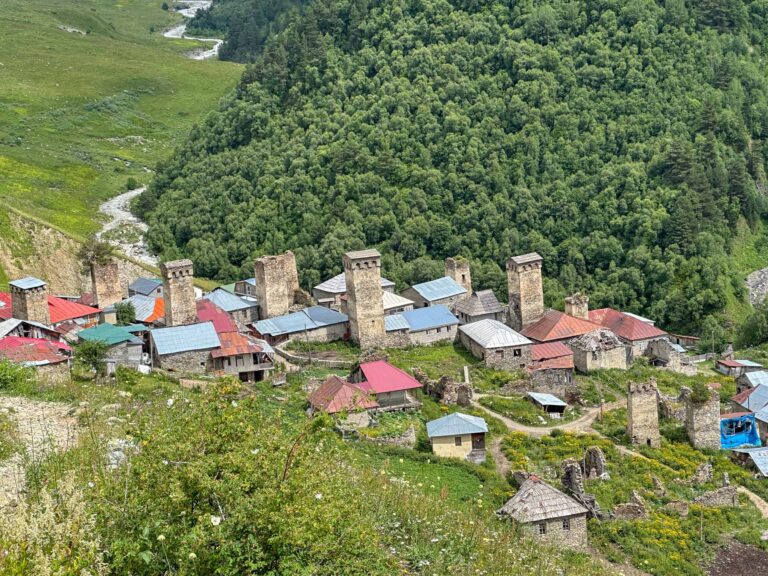 Besonders beeindruckend ist auch Uschguli. Das Dorf liegt auf 2.200 Meter und ist somit Europas höchstgelegenes dauerhaft bewohntes Dorf. Uschguli begeistert mit seinen perfekt restaurierten Wehrtürmen. Ein Turm kann sogar von innen besichtigt werden. „In Uschguli fühlten wir uns ein bisschen in der Zeit zurückversetzt. Wir konnten dort wirklich in die georgische Geschichte eintauchen.“