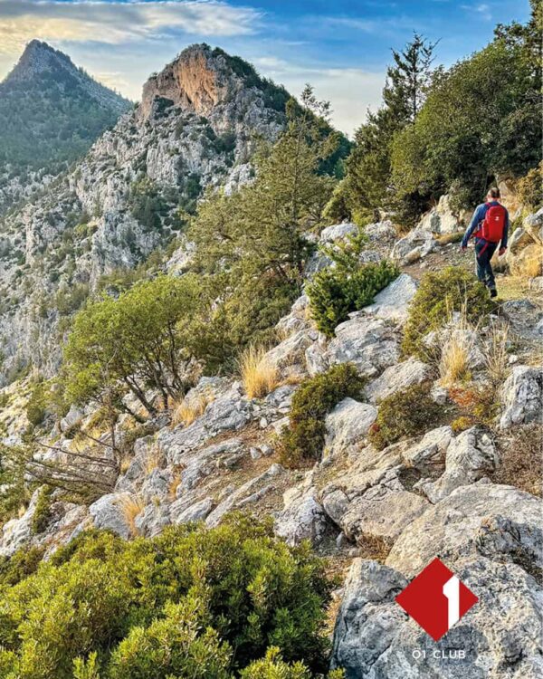 Vom kleinen Dorf Taskent aus starten wir unsere Wanderung auf einem aussichtsreichen Ziegenpfad. Unter schönen Felsformationen steigen wir hinauf zu einem kleinen Bergsattel, von dem der Blick über die weite Mesaoria-Ebene bis nach Nikosia und zu den hohen Bergen des Troodos-Gebirges reicht. Nach dem Bergsattel betreten wir einen Wald und haben schon erste schöne Blicke auf die Küste der Nordseite des Fünffingergebirges. Der Weg führt durch den herrlichen Wald hinunter zur Abtei von Bellapais.