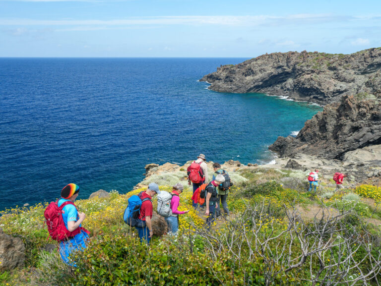 Gleich unsere erste Wanderung führt durch blühende Wildblumenwiesen zum „Lago di Venere“, der „See der Venus“. Dieser nehezu karibisch türkisblaue See liegt unwirklich ruhig in seinem Kraterbecken, umgeben von Blumenwiesen und wilden Kräutern.Weiter wandern wir dann durch einen schwarzen Lavastrom, wo einst heißes Magma ins Meer floss. Wie ein gut gehütetes Geheimnis erwartet uns dort dann der kleine „Laghetto delle Ondine“ – ein stiller Ort voller Kraft, an dem wir unser Mittagspicknick genießen. Ein alter Leuchtturm mit umliegenden Befestigungsanlagen zeugt heute noch von der großen strategischen Bedeutung der Insel in den beiden Weltkriegen. Am Nachmittag erleben wir ein weiteres Naturwunder: Wir baden in natürlichen und herrlich heißen Vulkan-Quellen direkt am Ufer, während das kühle Meer nur wenige Meter daneben an die Steine schlägt – ein „Kontrastbad“ der besonderen Art.